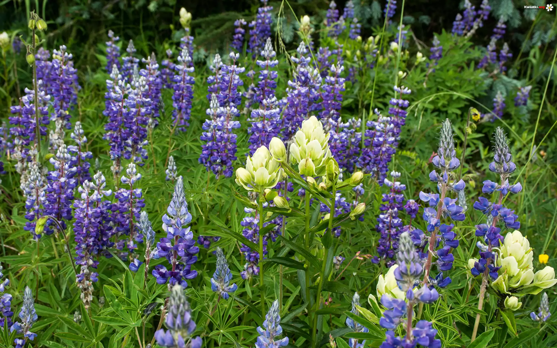 Białe, Fioletowe, Kwiaty, Łubin - Zdjęcia