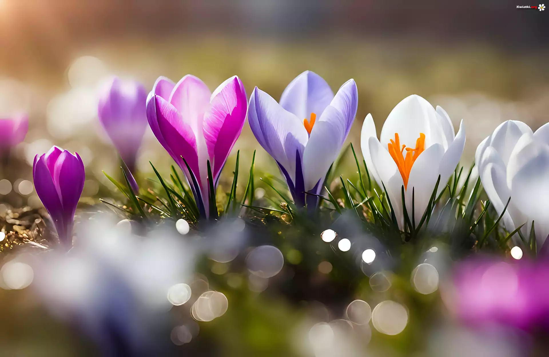 Kolorowe, Różowy, Fioletowy, Białe, Krokusy, Kwiaty - Zdjęcia