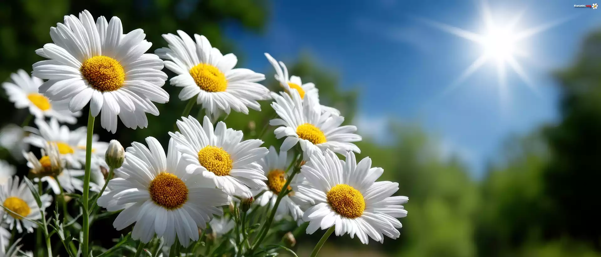 Margerytki, Białe, Kwiaty, Słońce, Grafika - Zdjęcia