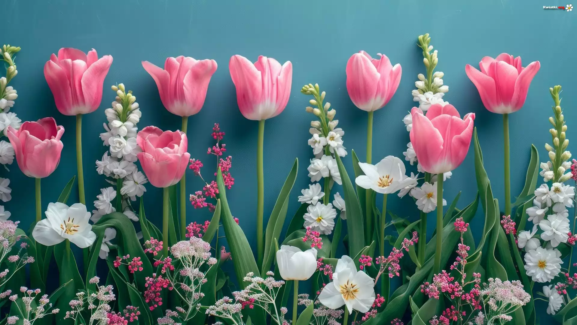 Różowe, Białe, Kwiaty, Tulipany, Liście - Zdjęcia