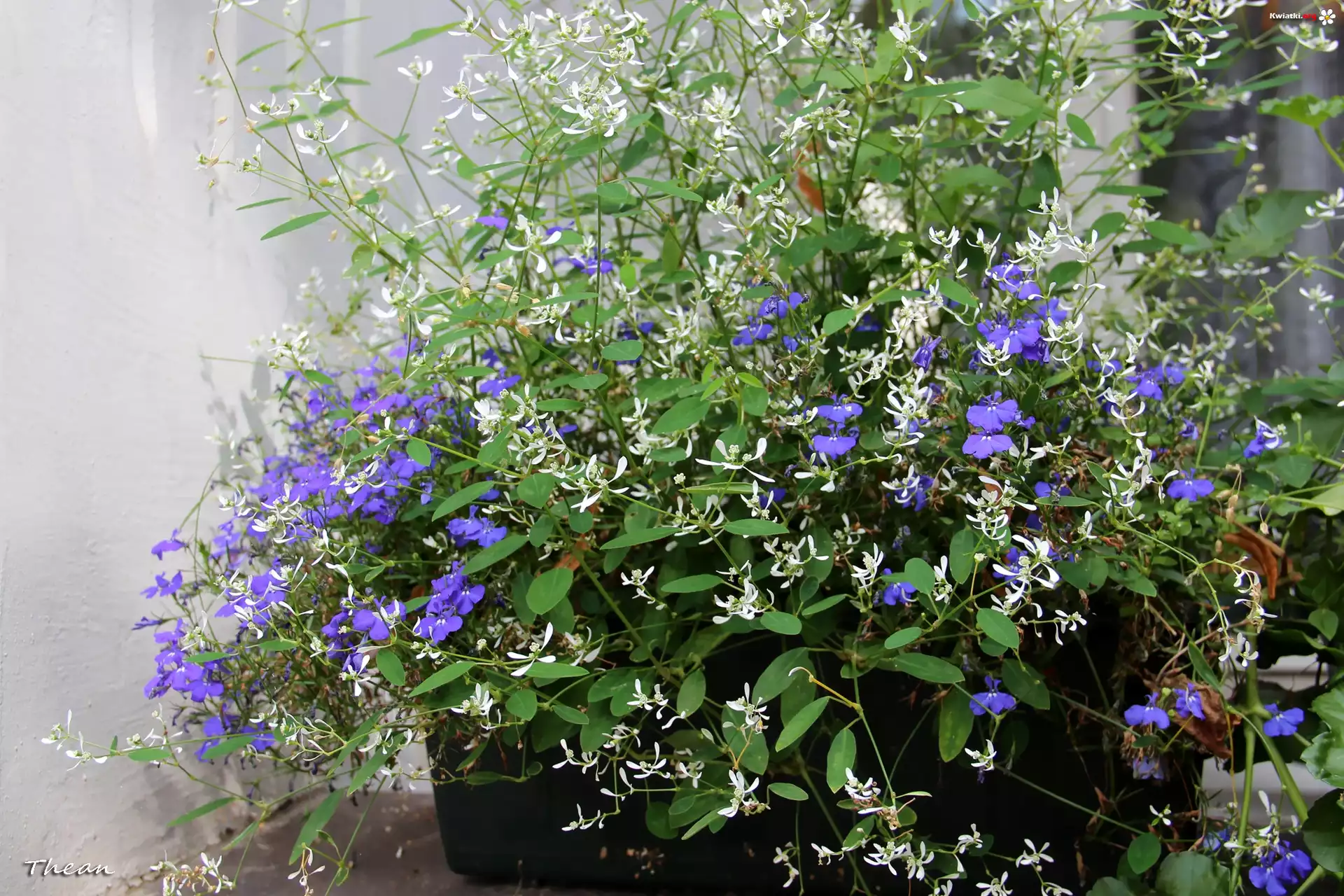 Białe, Niebieskie, Kwiaty, Donica - Zdjęcia