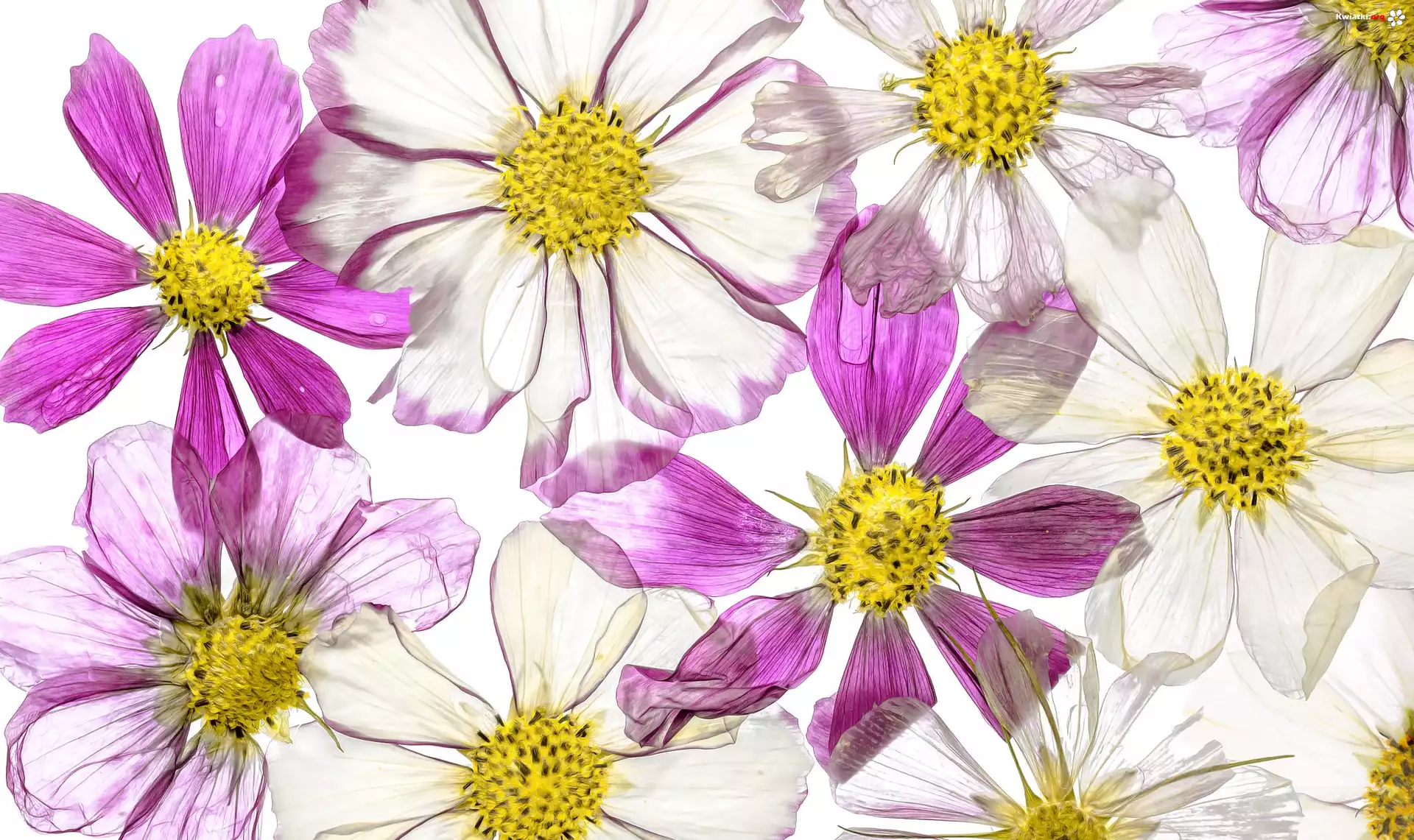 Białe, Różowe, Kwiaty, Kosmea - Zdjęcia