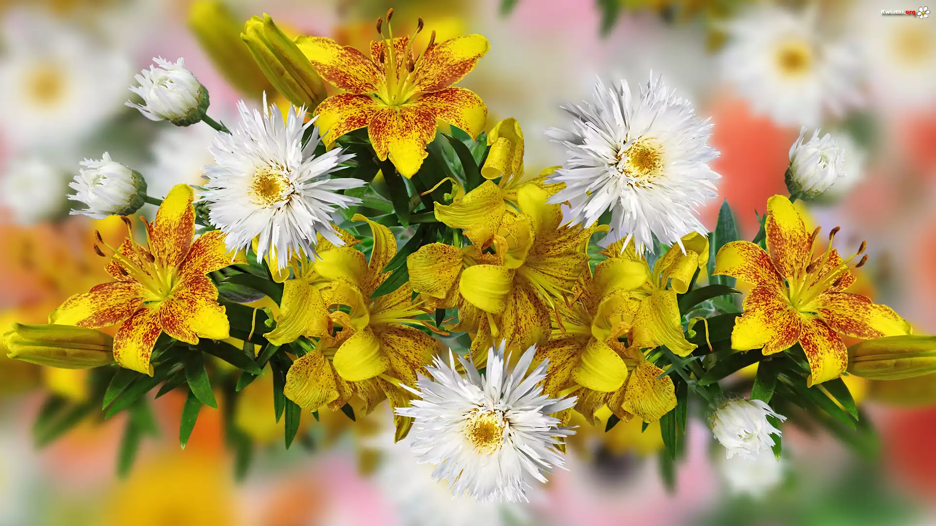 Białe, Kwiaty, Żółte, Lilie, Grafika - Zdjęcia