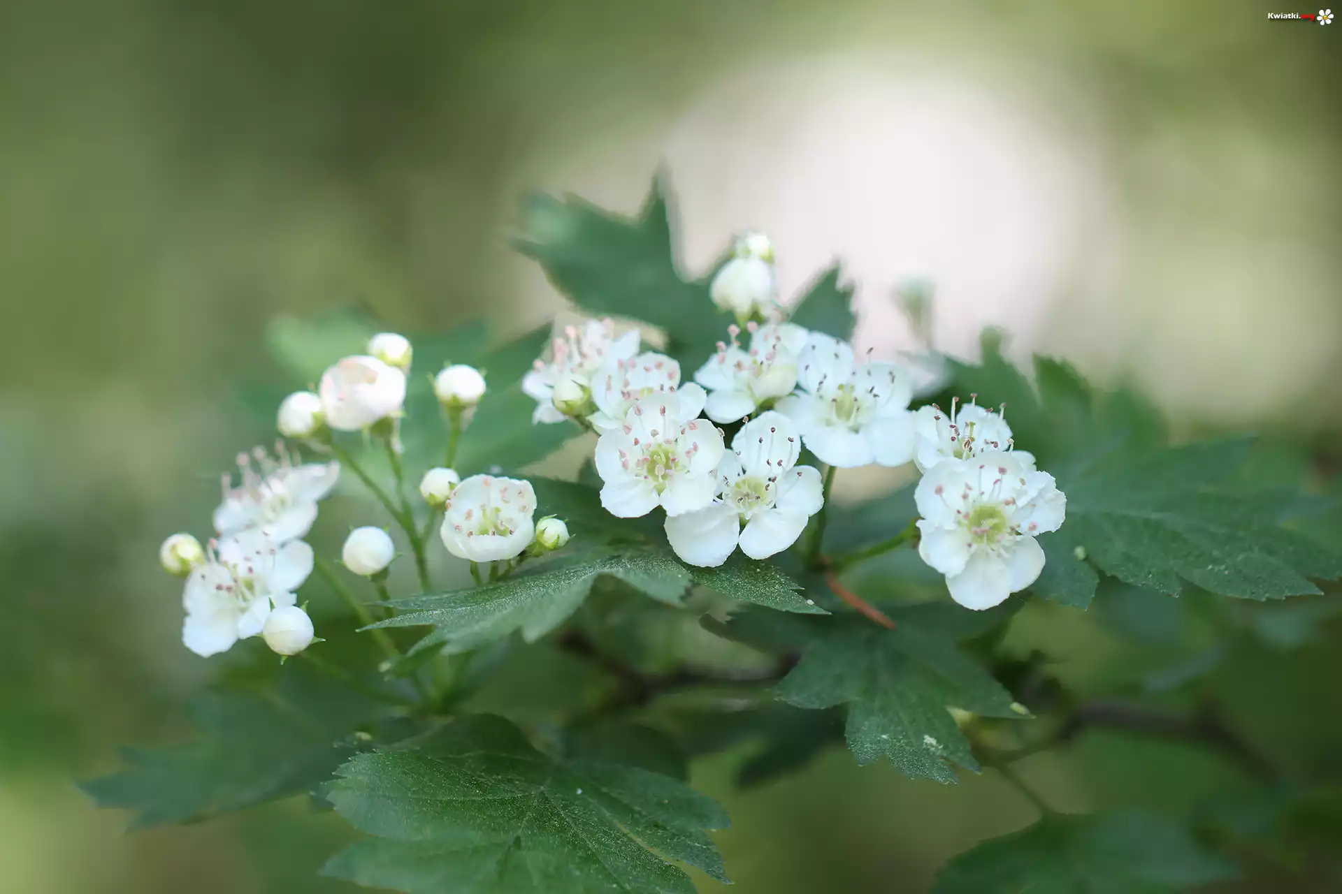Białe, Kwiaty, Listki, Krzew - Zdjęcia