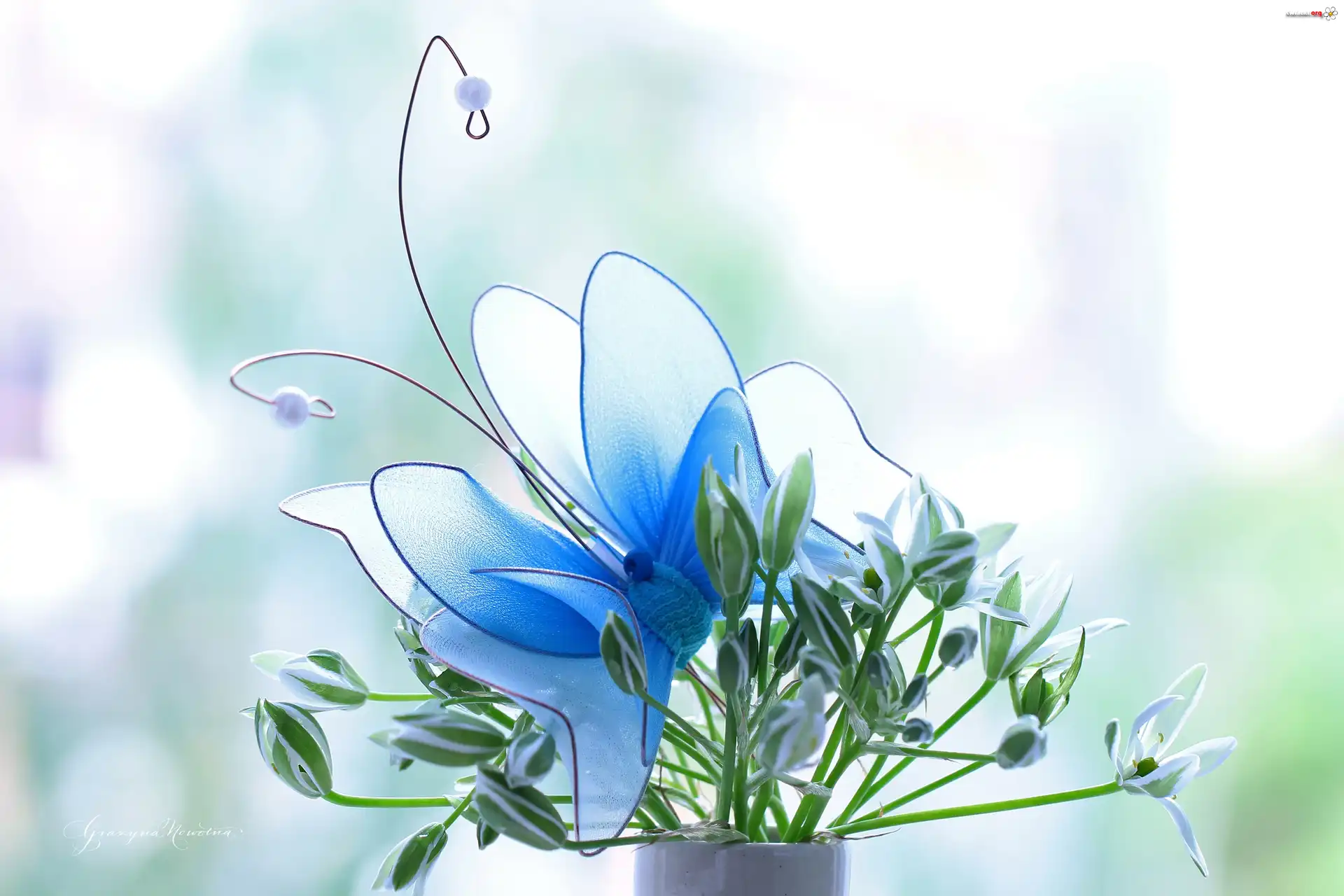 Białe, Kwiaty, Motyl, Ozdoba - Zdjęcia