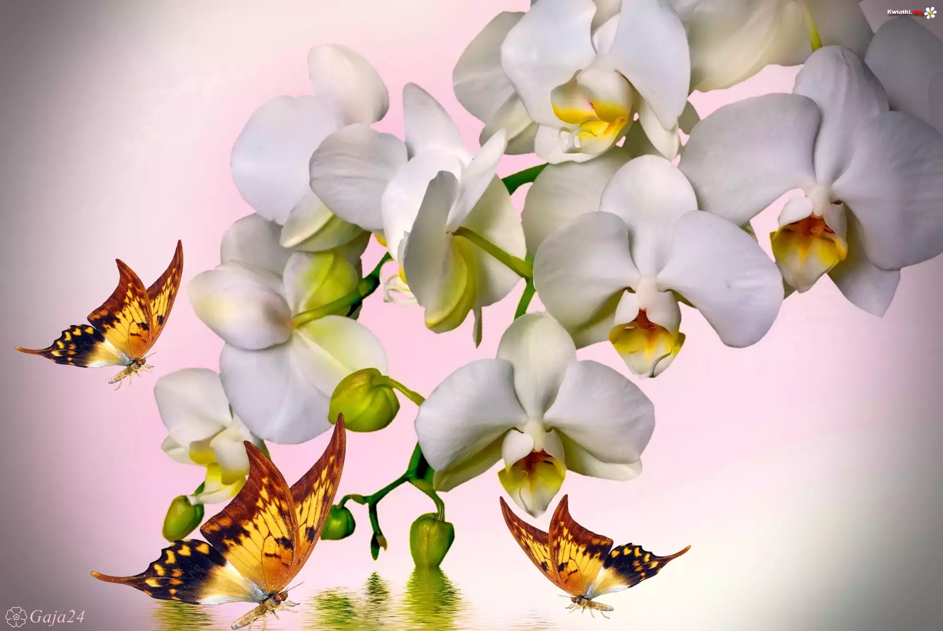 Kwiat Białe Storczyki, Żółte Motyle, Art