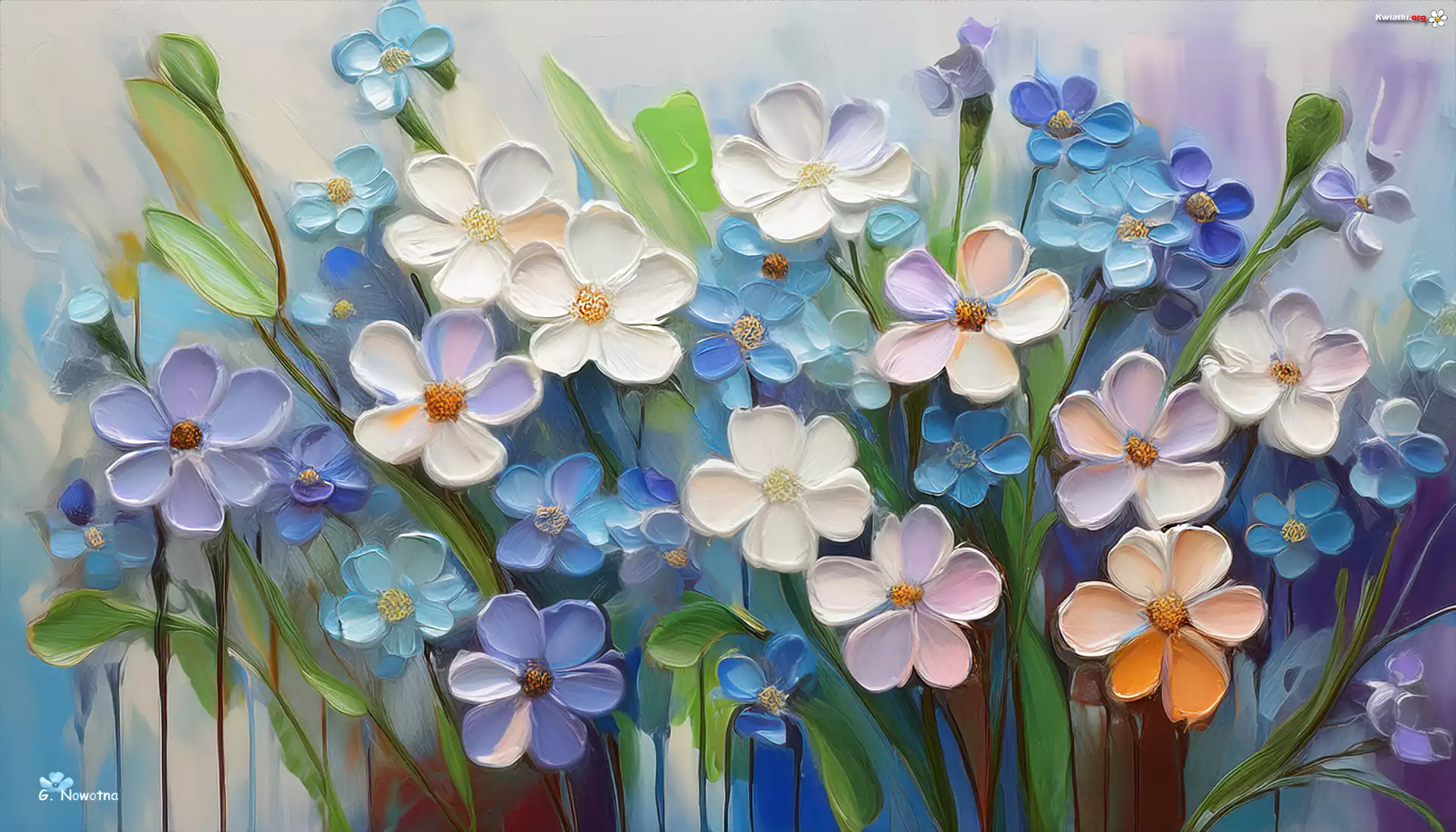 Kolorowe, Białe, Niebieskie, Kwiaty, Grafika - Zdjęcia