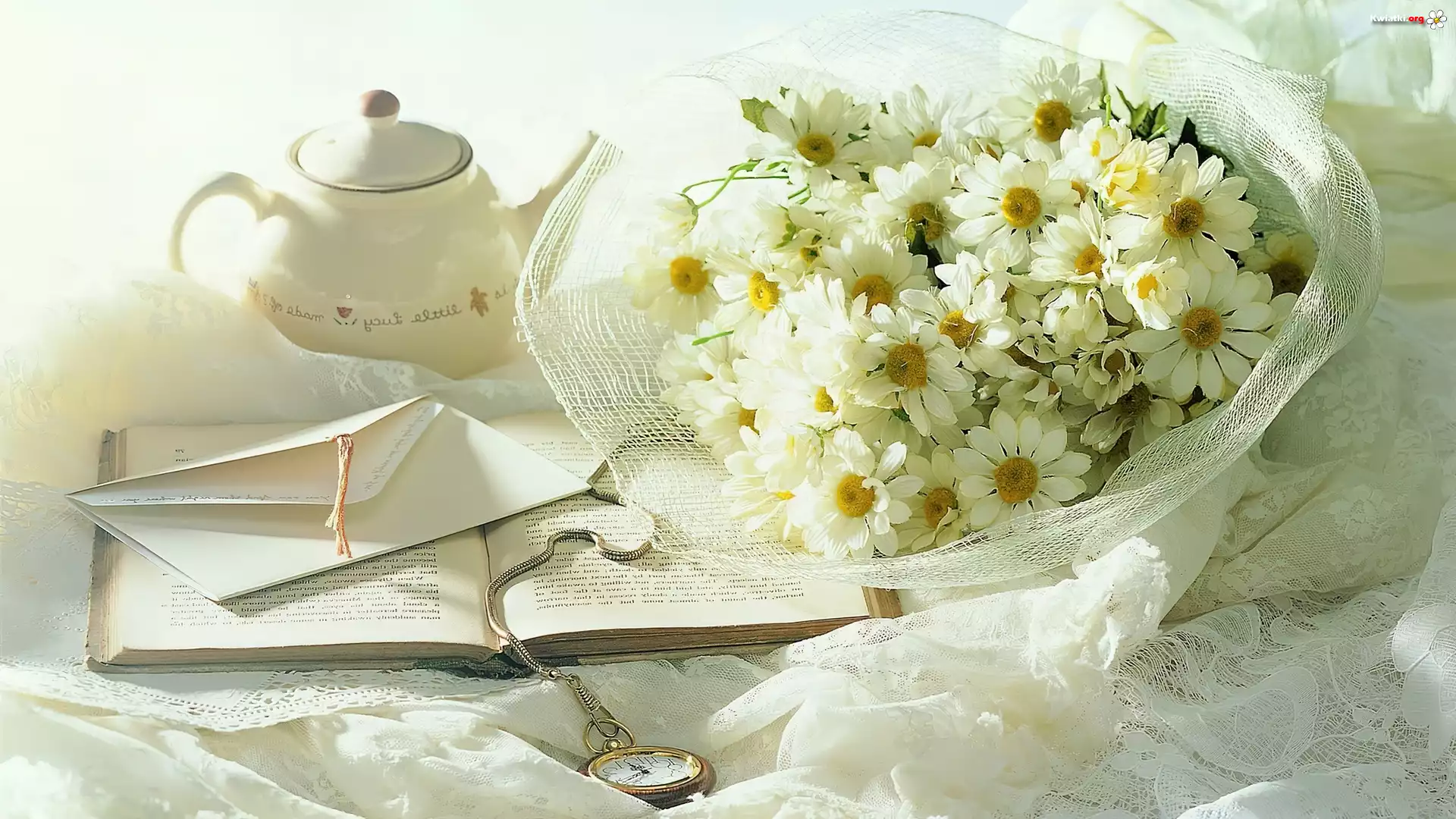 Białe, Margerytki, Biała, Porcelana, Notatnik, Długopis - Zdjęcia