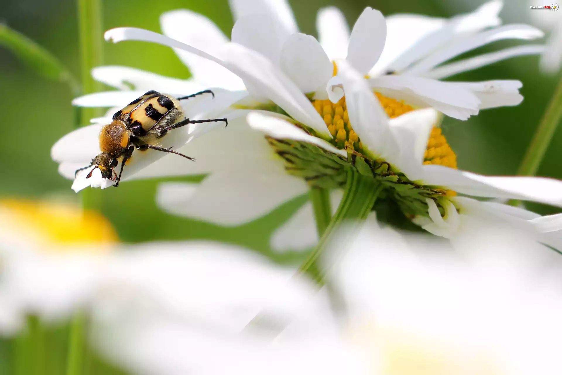Białe, Kwiaty, Chrząszcz, Orszoł prążkowany - Zdjęcia