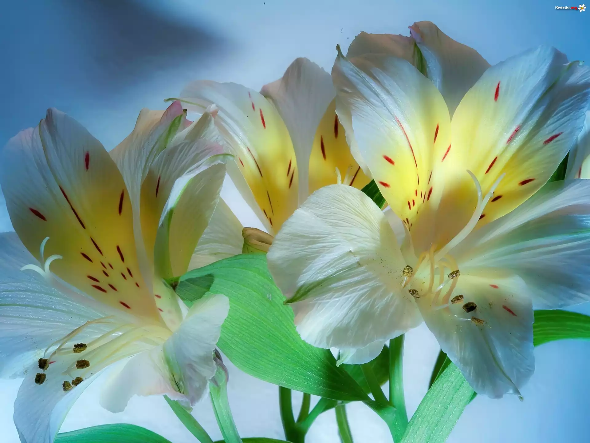 Sonecznik, Niebieskie, To Trzy, Kwiaty, Lilie wodne, Licie Fioletowy, Irys, Kwiaty, Przyroda Kwiaty, te Kalie, Niebieskie Kwiaty, Zielone odygi, Licie Kwiat, Mimoza, Licie Szafirek, Suche, Trawy, Jezioro, Brzeg Hoja, Imperialis, Zblienie Rowe, Kwiaty, Chmury, Niebo Liliowiec, Fotografia, Makro, Prciki