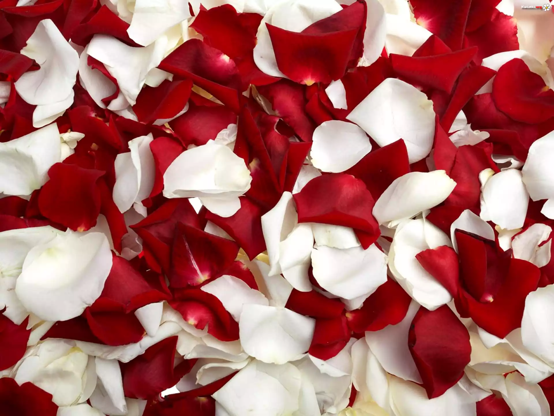 Białe, Czerwone, Płatki, Róż - Zdjęcia