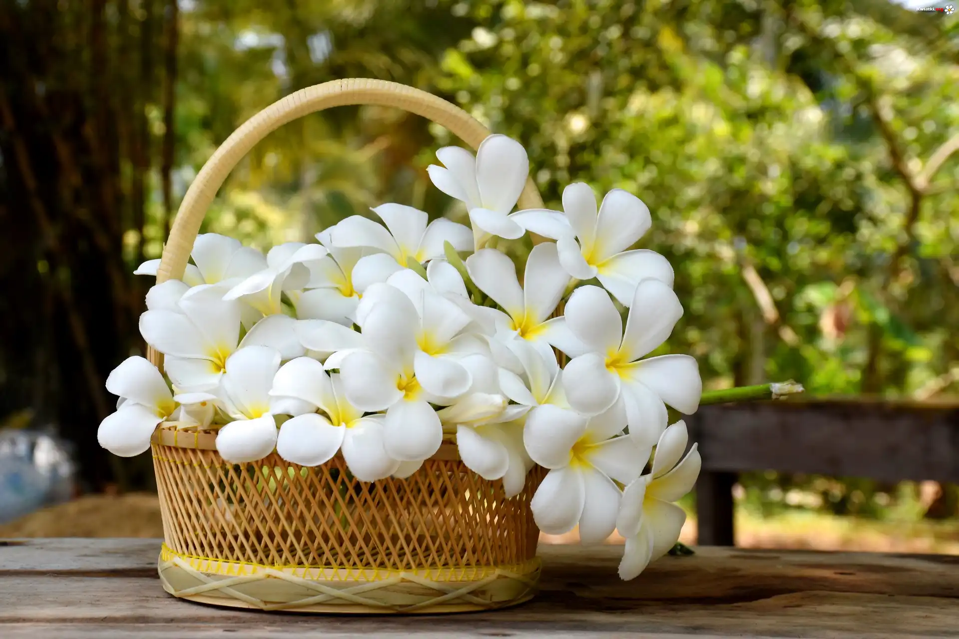 Białe, Kwiaty, Plumeria, Koszyk - Zdjęcia