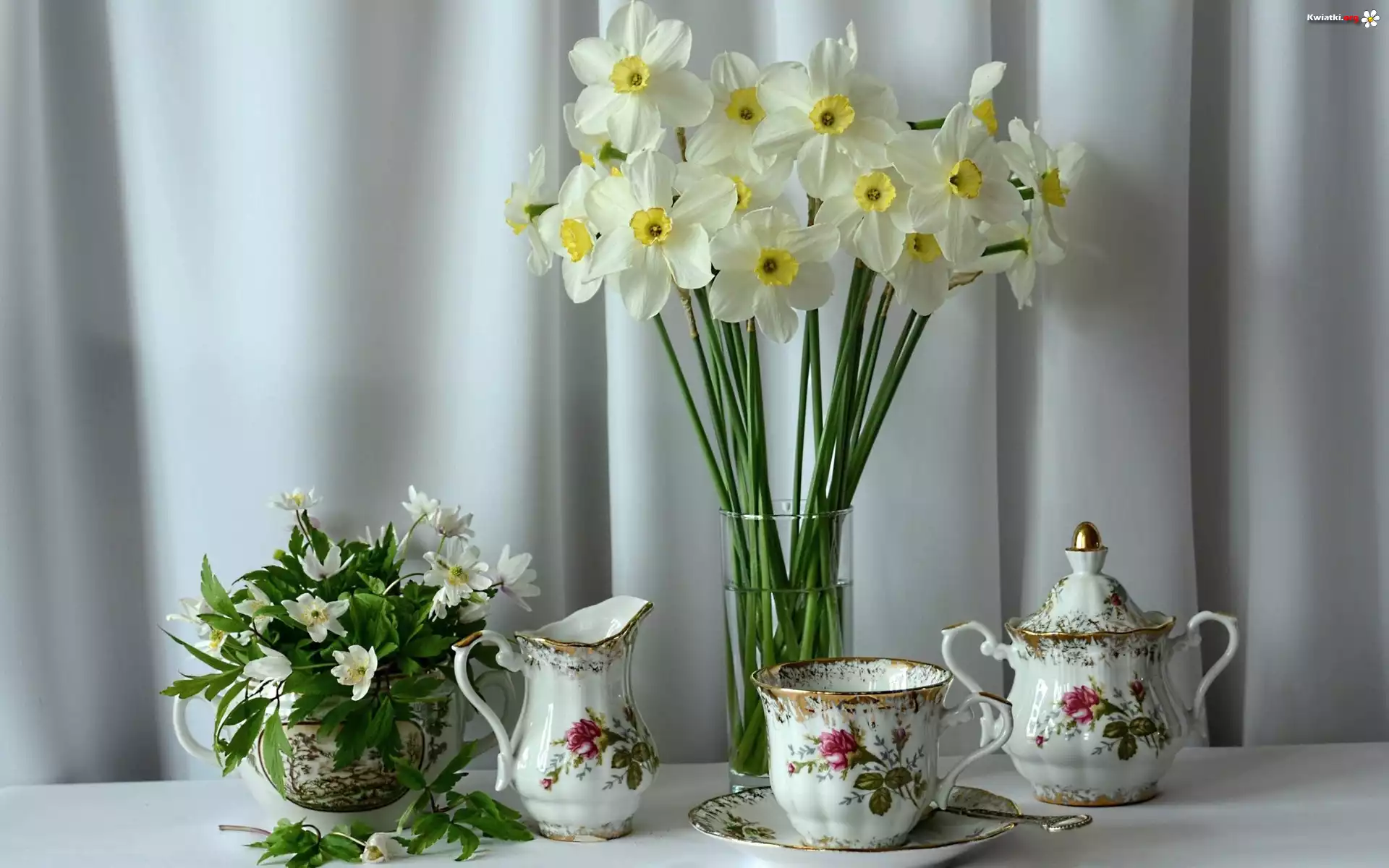 Białe, Kwiaty, Bukiet, Żonkile, Porcelana, Kompozycja - Zdjęcia