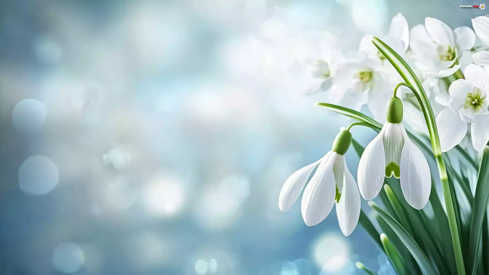 Kwiaty, Białe, Przebiśniegi, Rozmyte, Tło - Zdjęcia