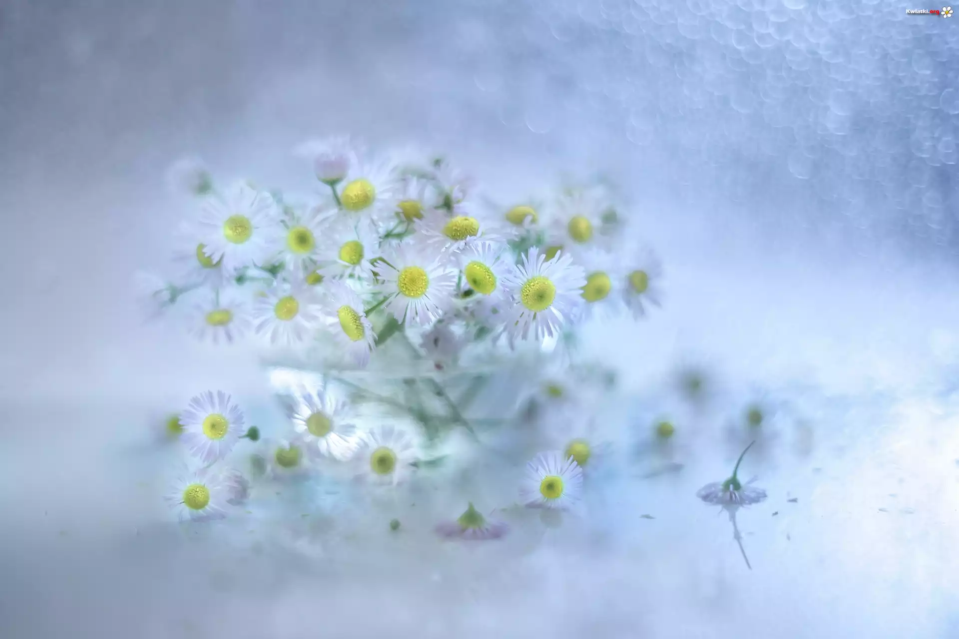 Kwiat Przymiotno białe, Bukiecik, Kwiaty, Polne, Szklane, Naczynie