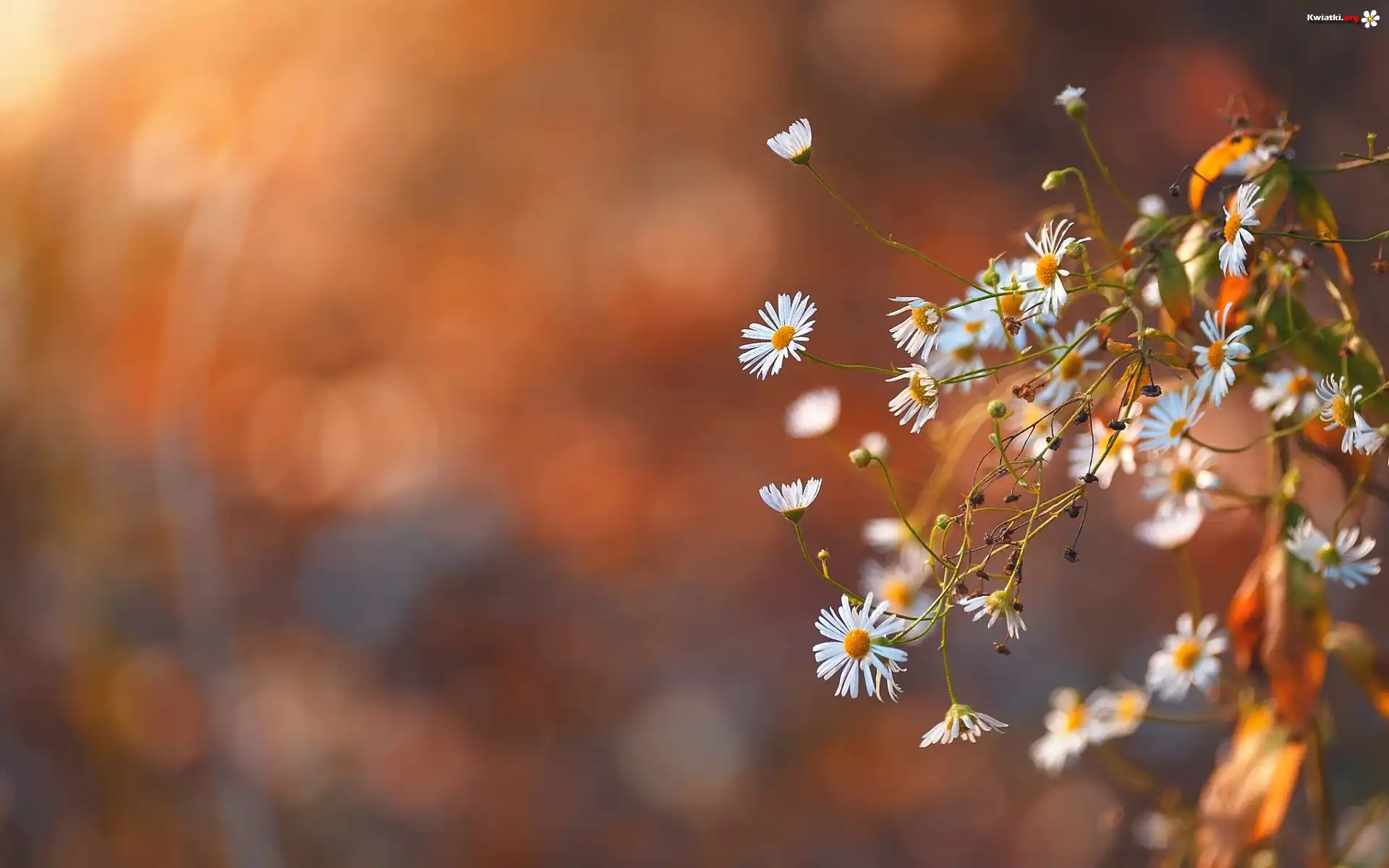Białe, Kwiaty, Przymiotno, Rozmyte tło - Zdjęcia