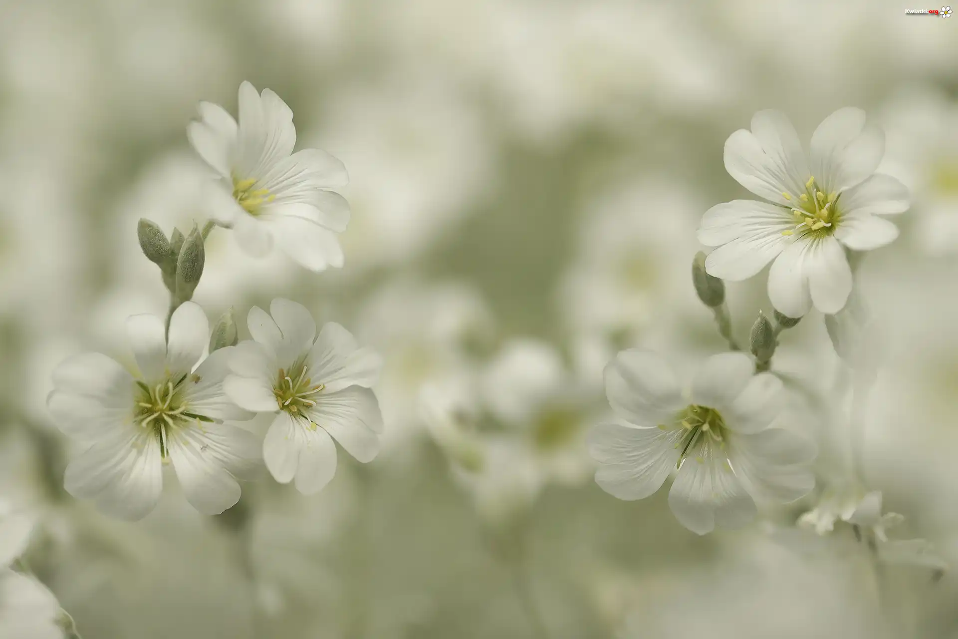 Białe, Kwiaty, Zbliżenie, Rozmyte tło - Zdjęcia