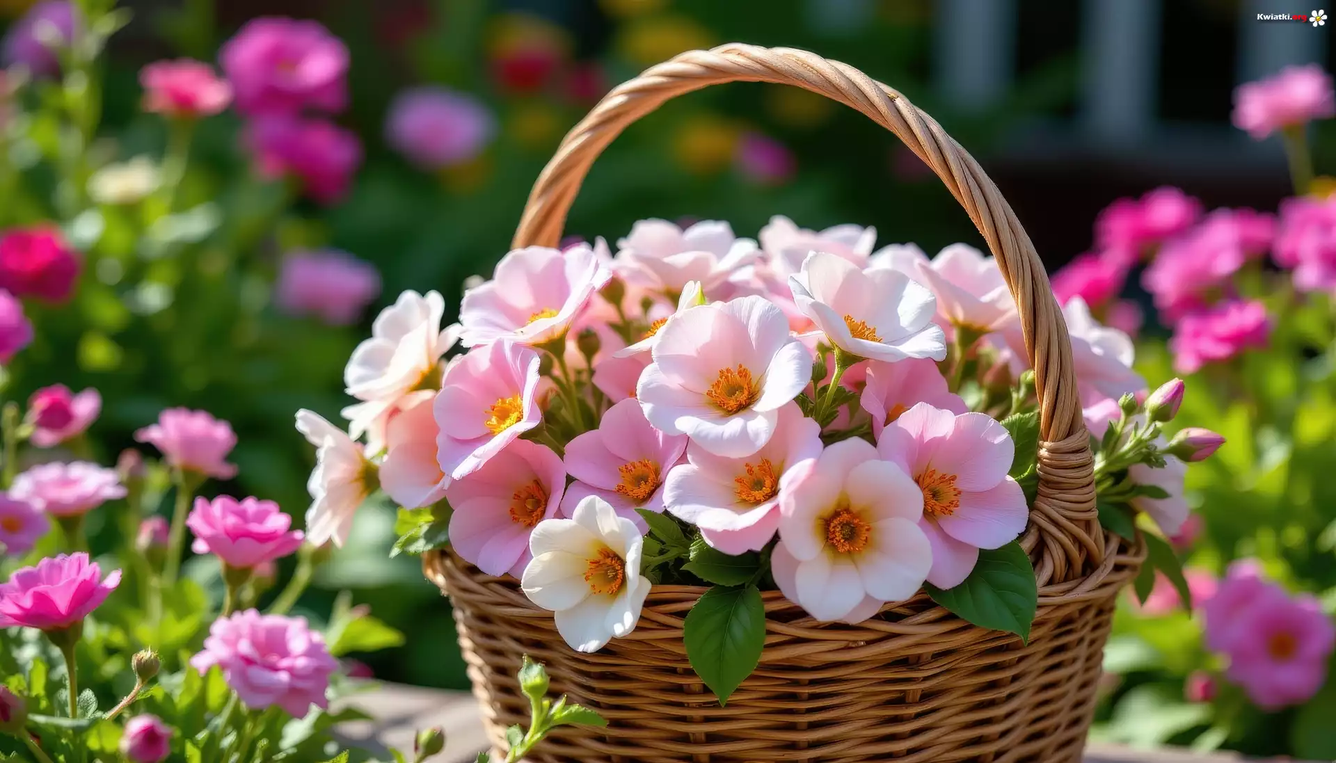 Kwiaty, Białe, Różowe, Kamelie, Koszyk - Zdjęcia