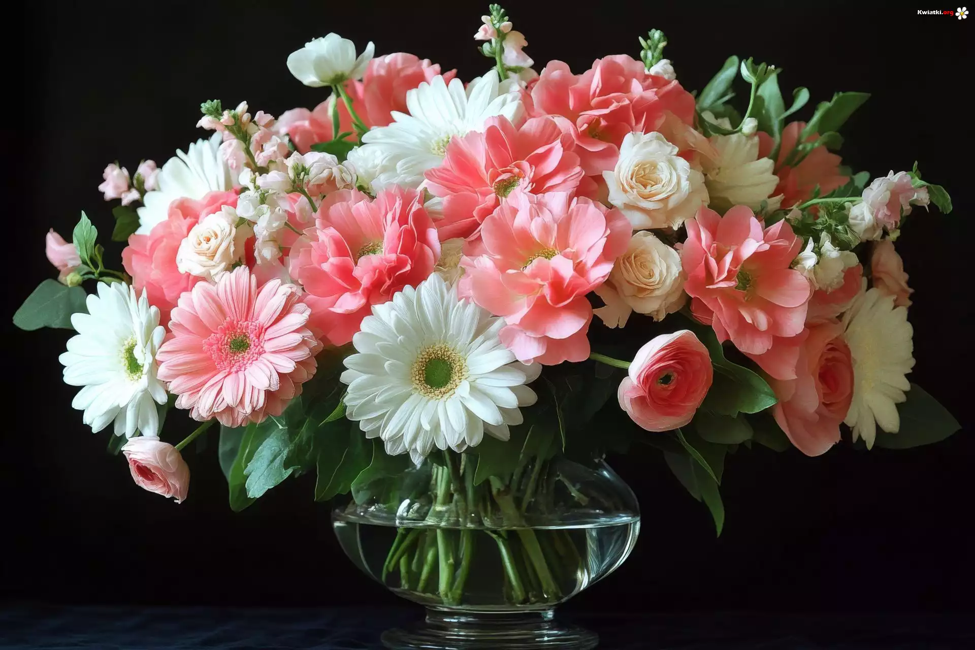 Kwiat Kwiaty, Białe, Różowe, Bukiet, Wazon