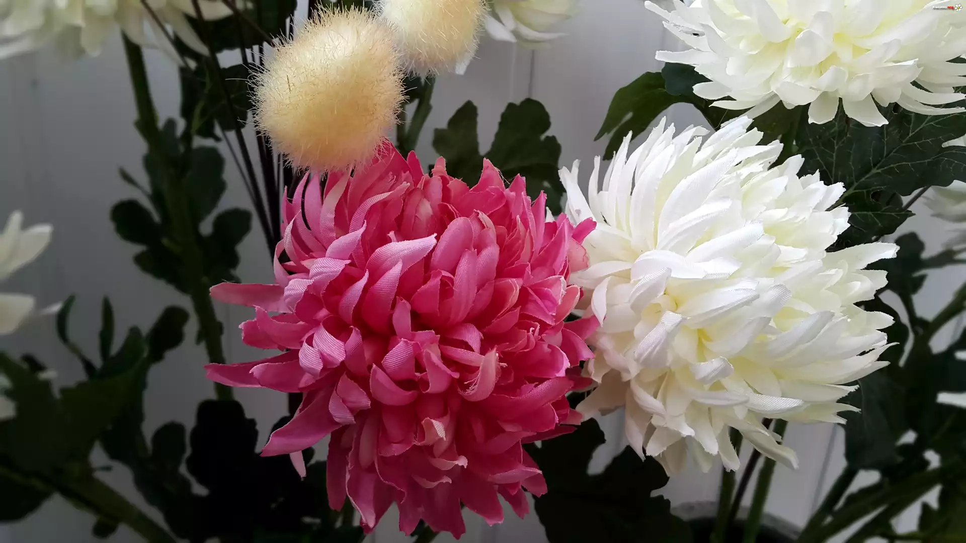 Różowo, Białe, Chryzantemy - Zdjęcia