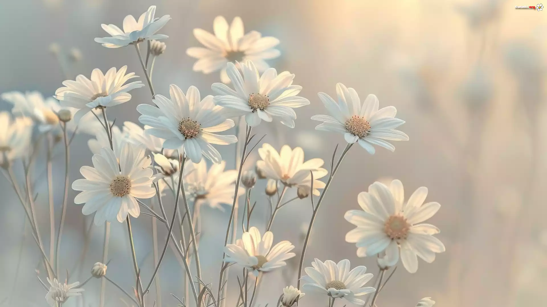 Białe, Kwiaty, Rozświetlone - Zdjęcia