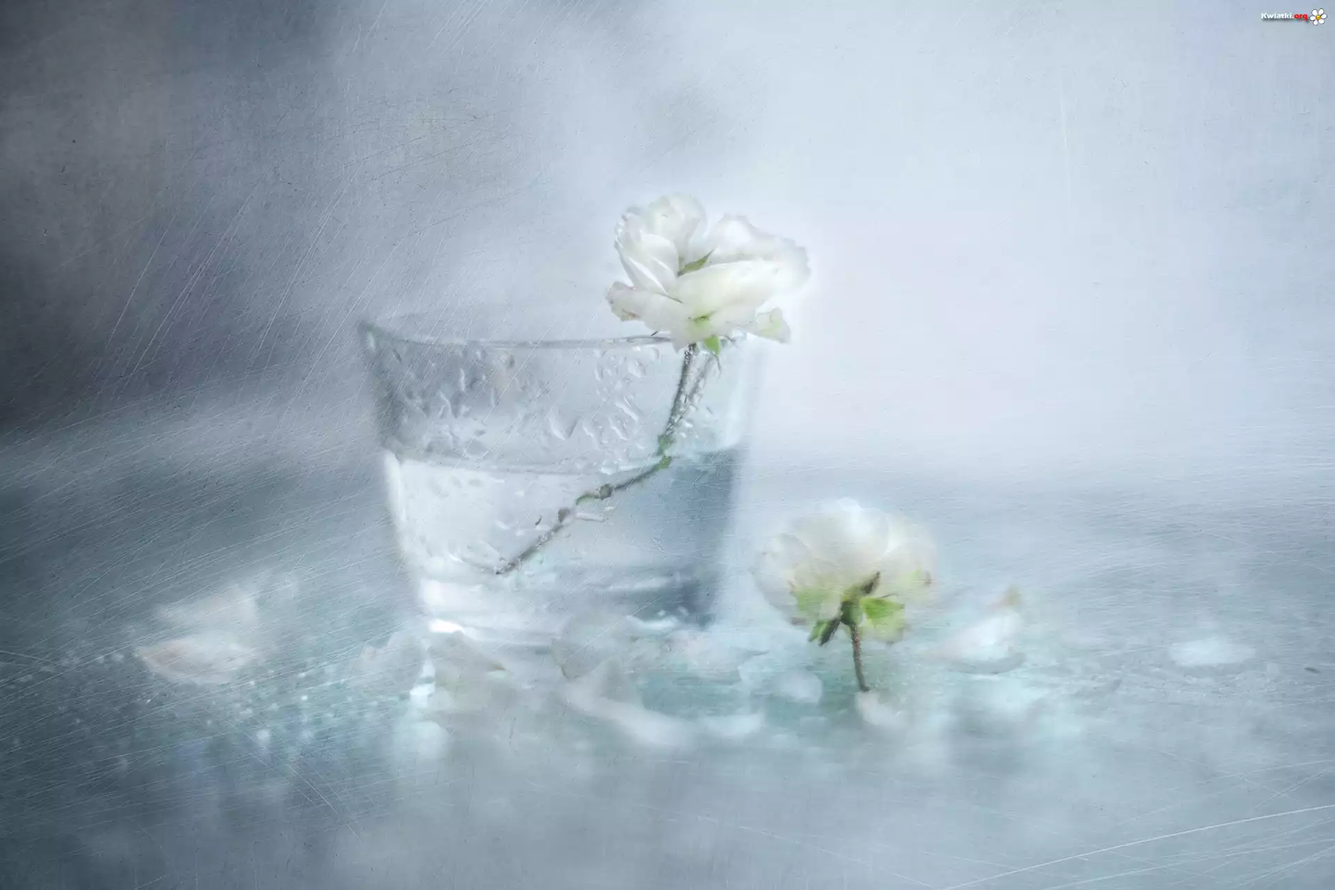 Kwiat Białe, Róże, Różyczki, Wazonik