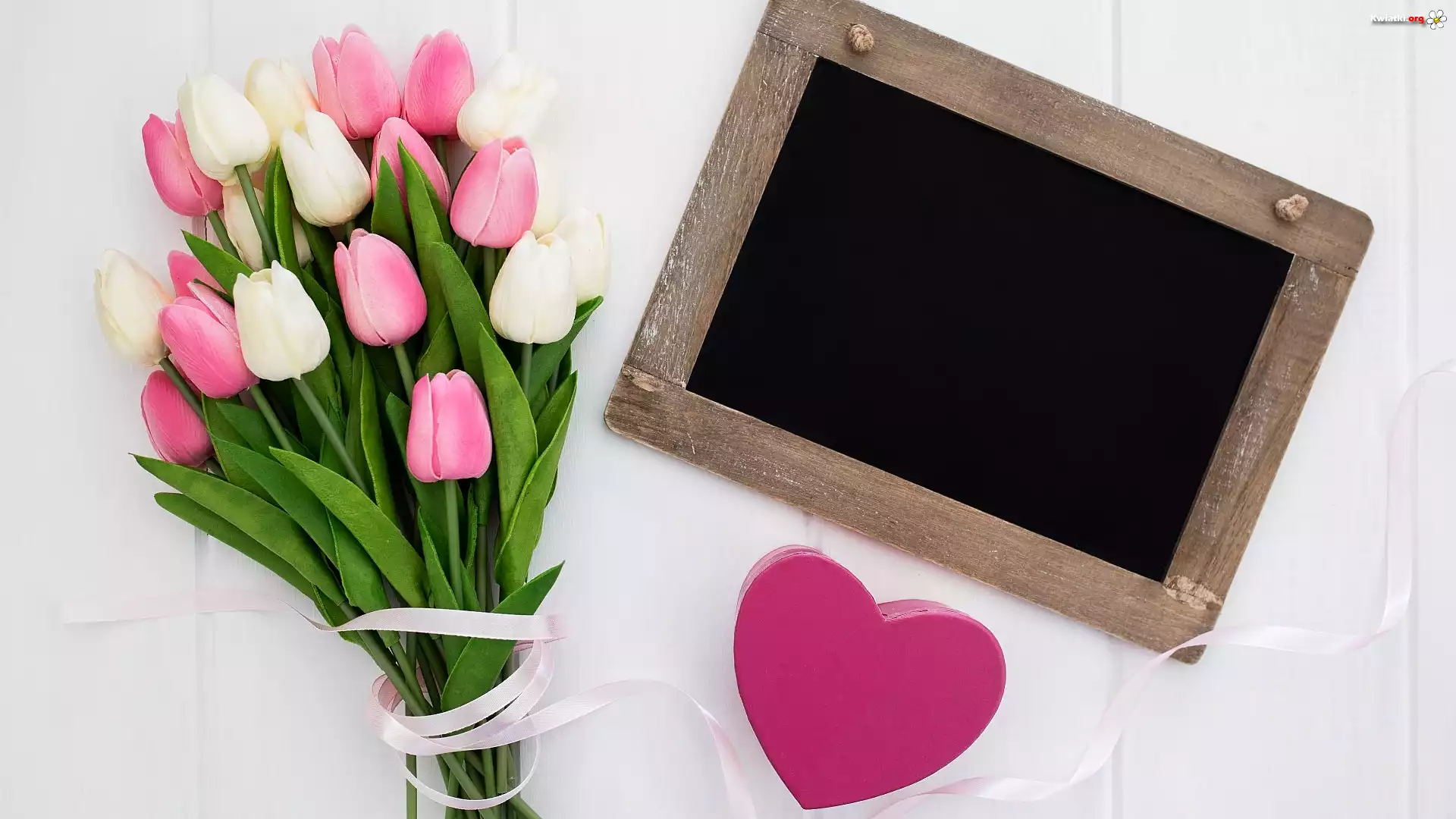 Kwiat Białe, Różowe, Tulipany, Bukiet, Tabliczka, Serce