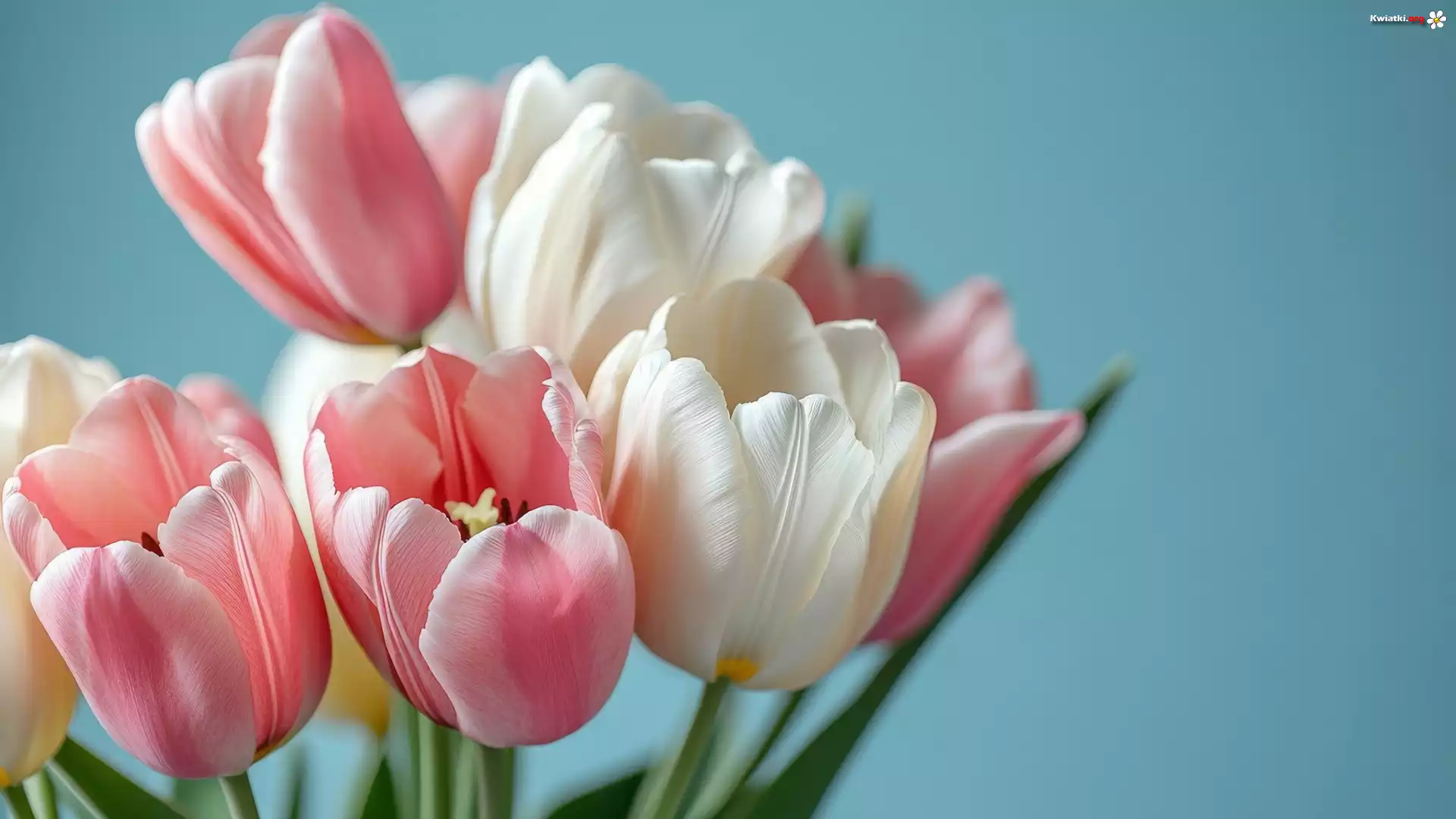 Różowe, Białe, Tulipany, Niebieskie, Tło - Zdjęcia