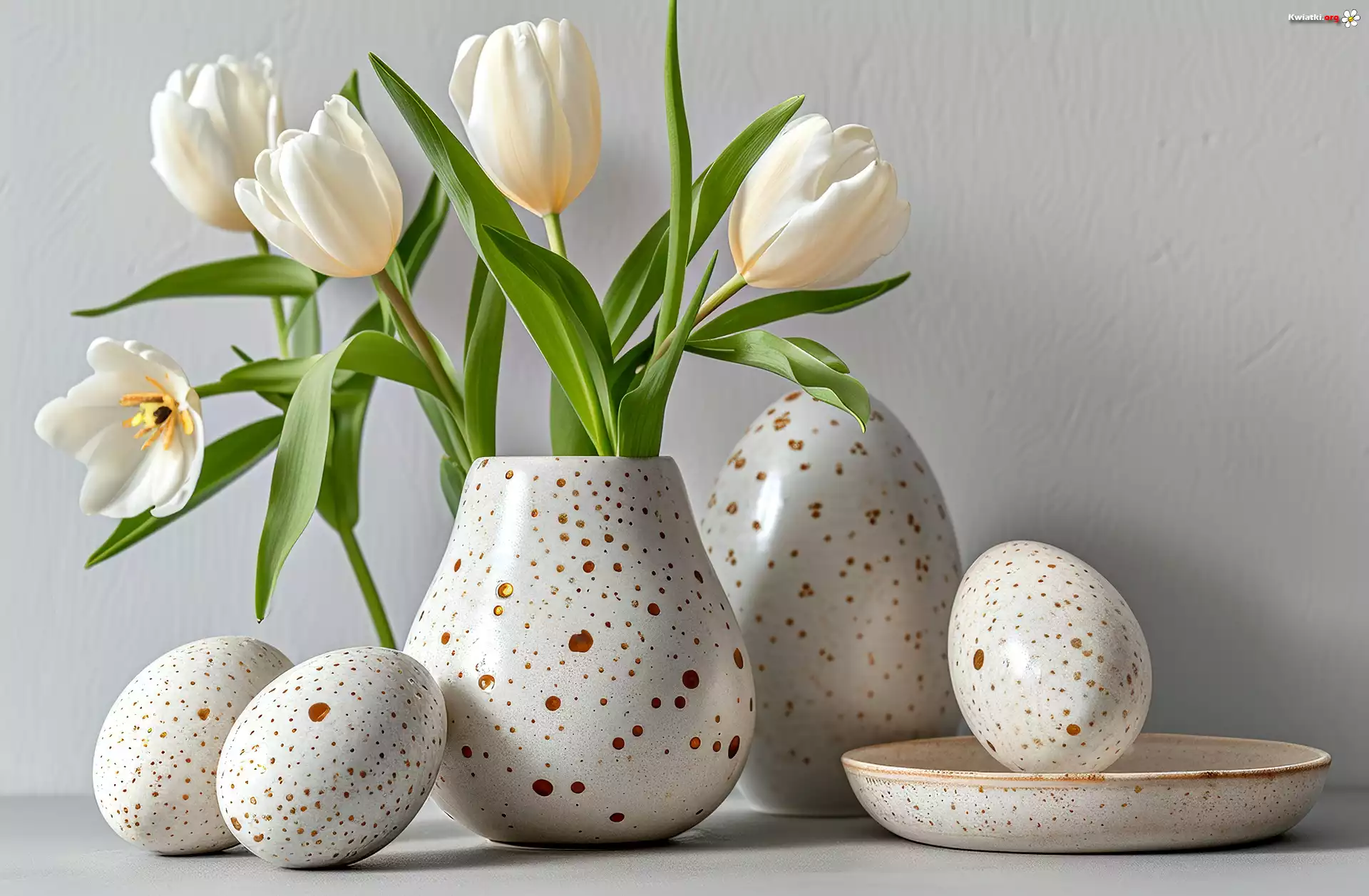 Kwiat Porcelanowe, Jajka, Wazon, Białe, Tulipany, Wielkanoc, Grafika