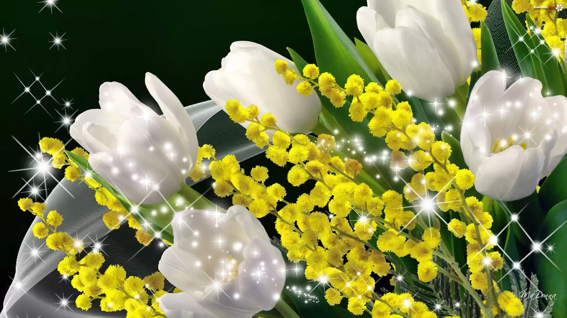 Kwiat Białe, Tulipany, Refleksy, Światła, Art