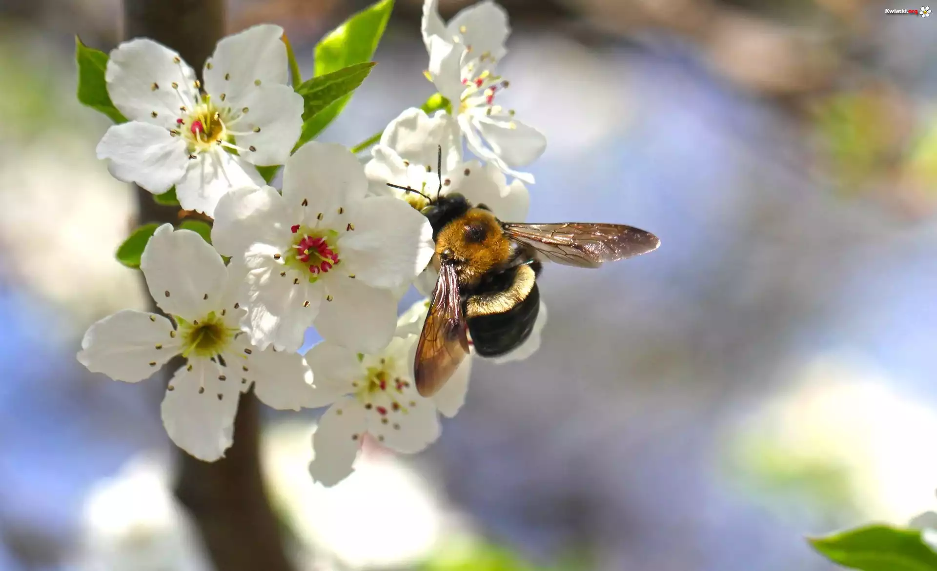 Kwiat Białe, Kwiaty, Wiśni, Pszczoła