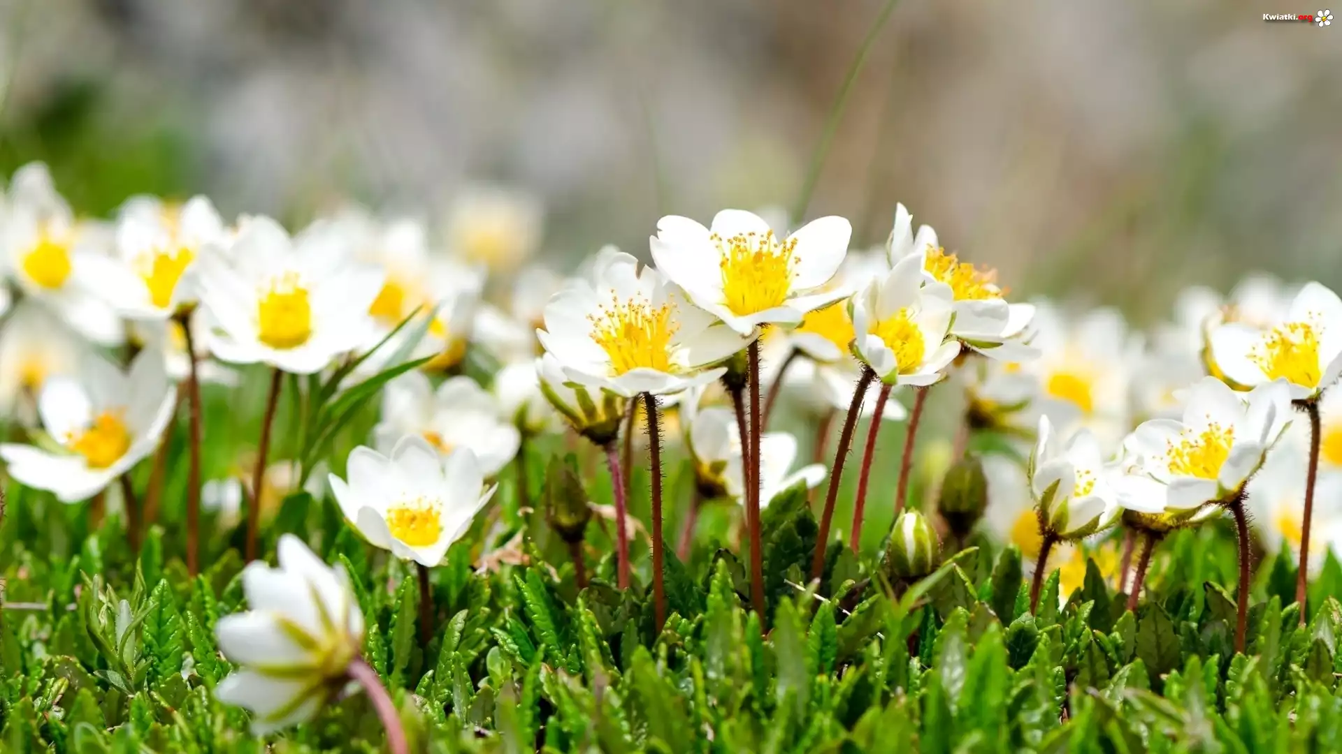 Białe, Wiosenne, Zawilce, Trawa - Zdjęcia