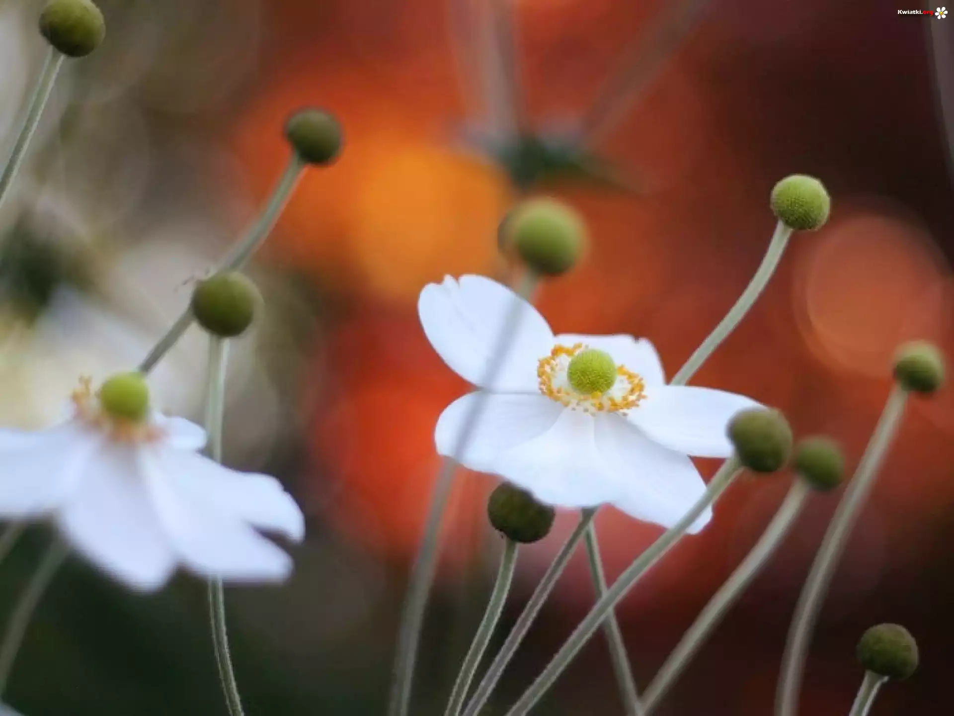 Białe, Kwiaty, Zawilec chiński, Zielone, Pączki - Zdjęcia