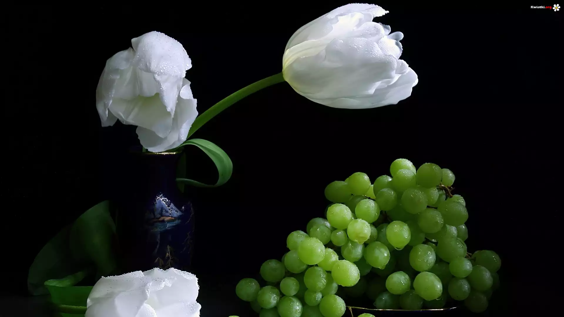 Kwiat Białe, Tulipany, Zielone, Winogrona