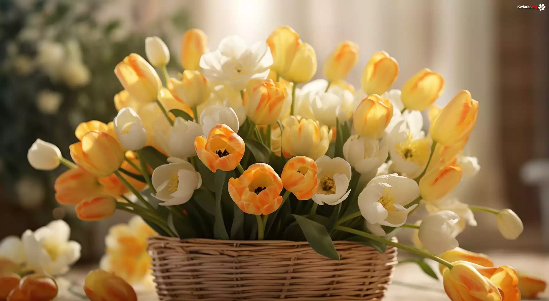 Kwiat Kompozycja, Białe, Żółte, Tulipany, Koszyk
