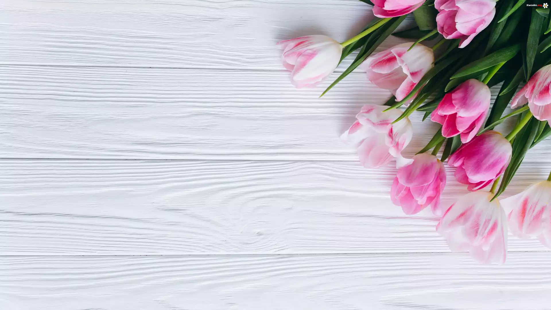 Biało-różowe, Tulipany, Białe, Deski - Zdjęcia