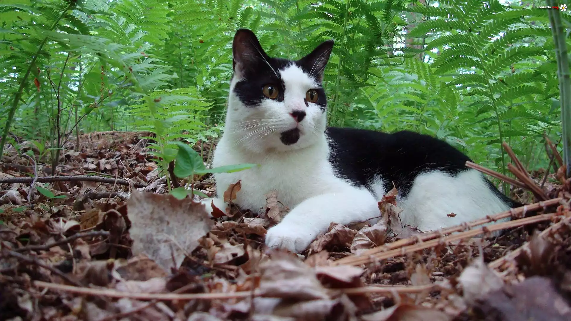 Biało, Czarny, Kotek, Paproć - Zdjęcia