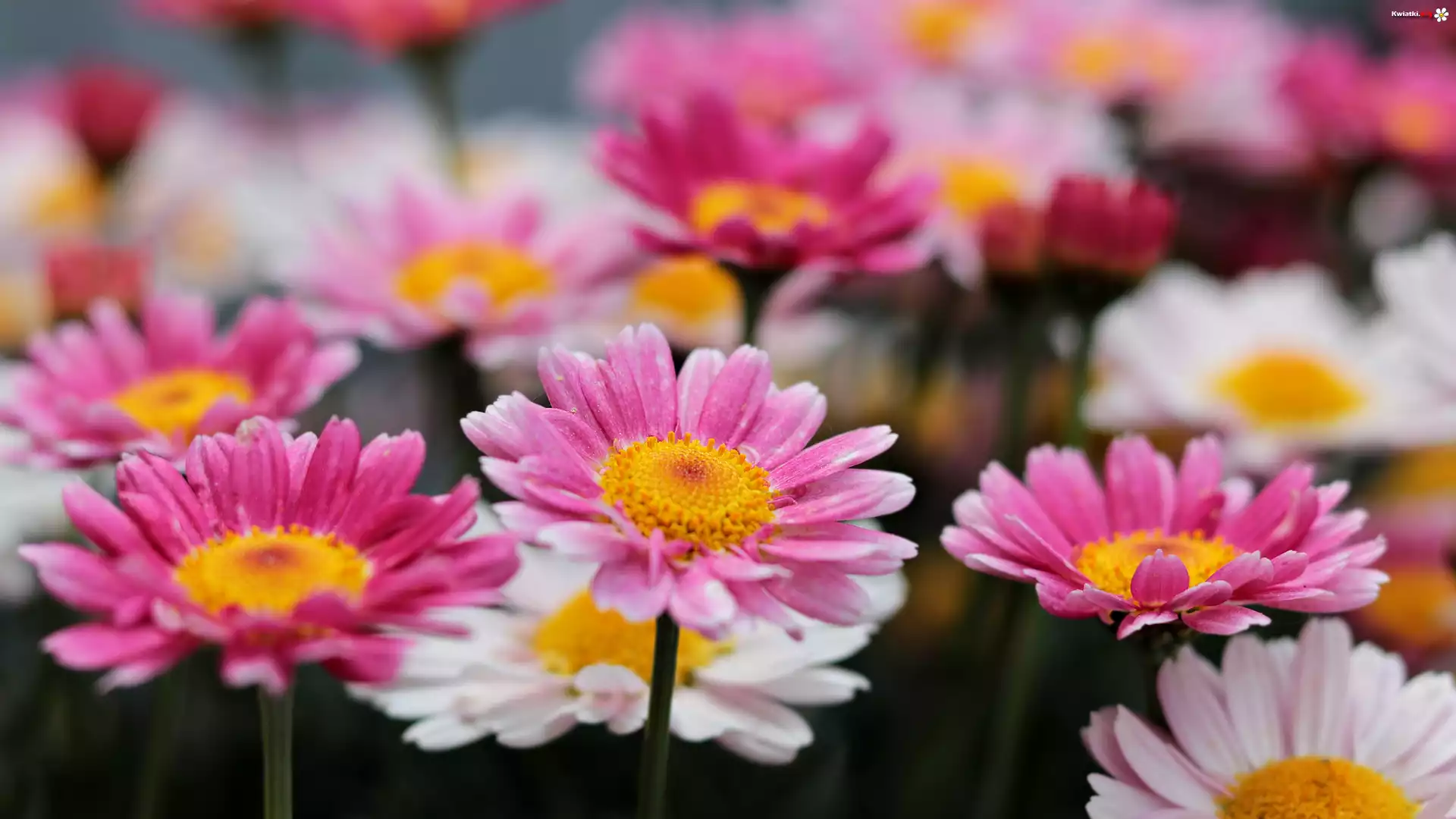 Biało-różowe, Stokrotki, Zbliżenie, Rozmyte tło - Zdjęcia