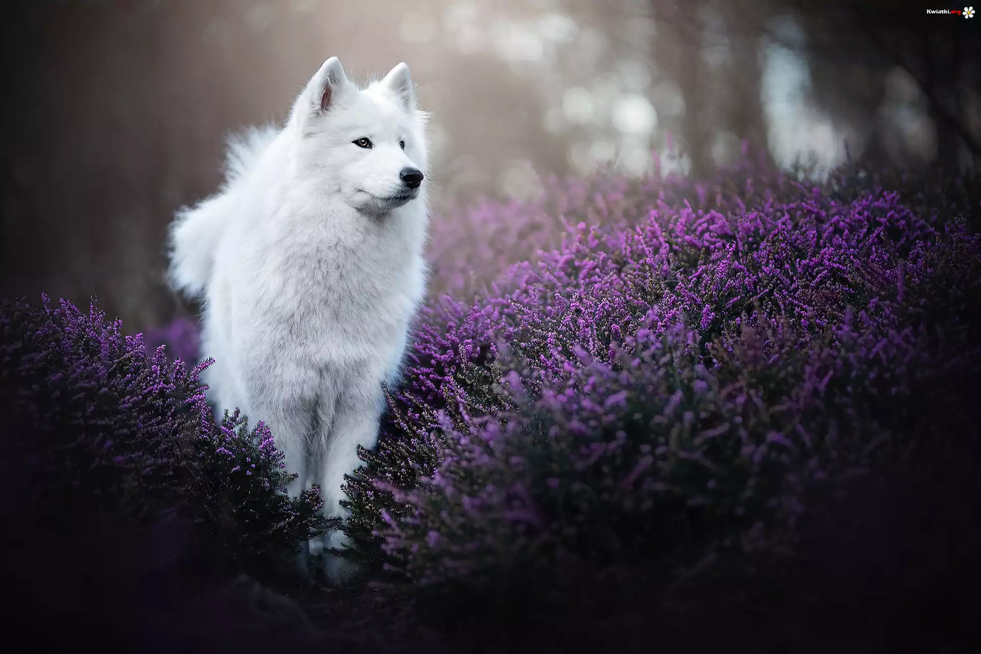 Kwiat Biały, Pies, Szpic japoński, Wrzosy