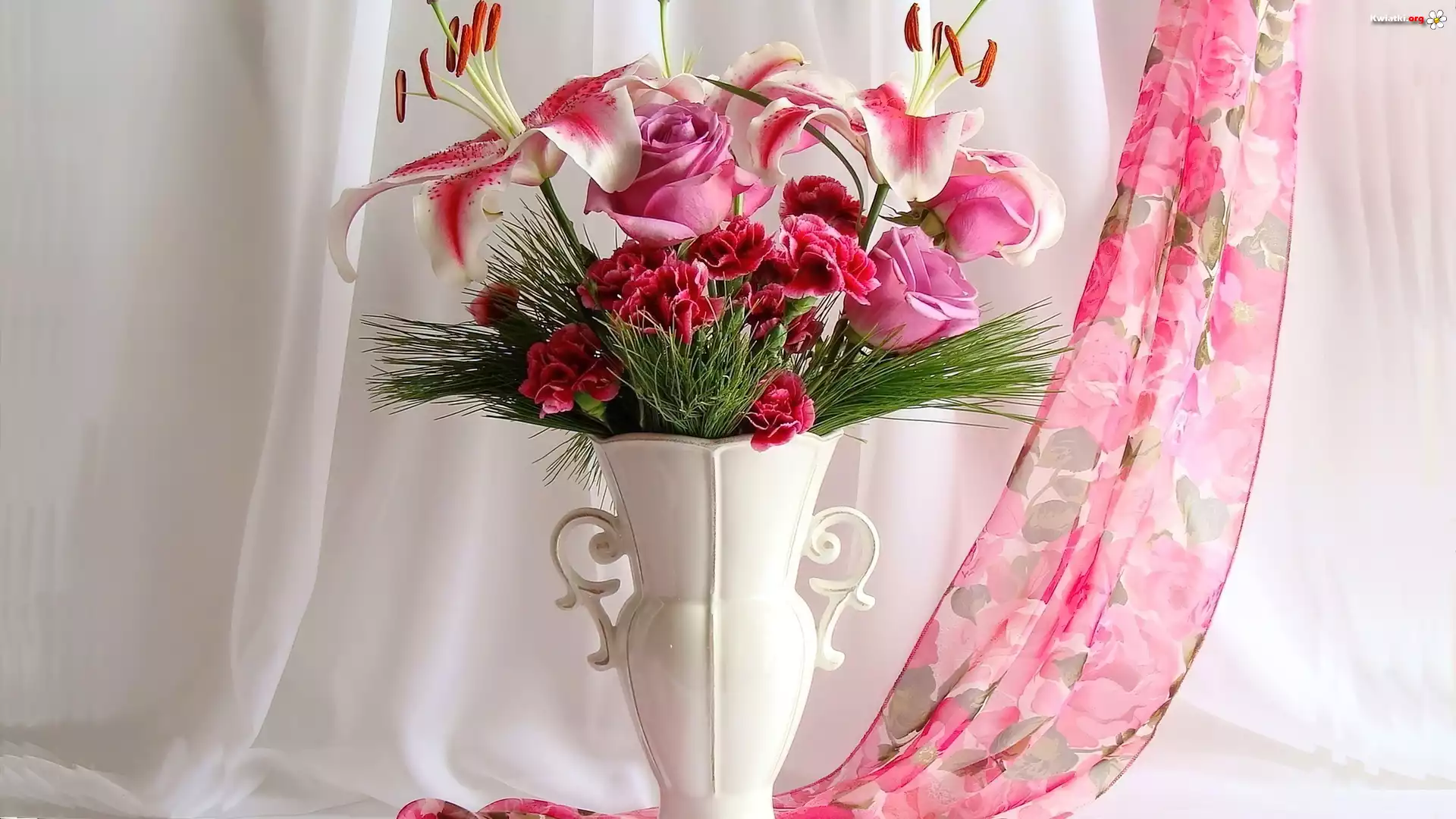 Kwiat Biały, Wazon, Bukiet, Kwiatów, Kolorowy, Szal