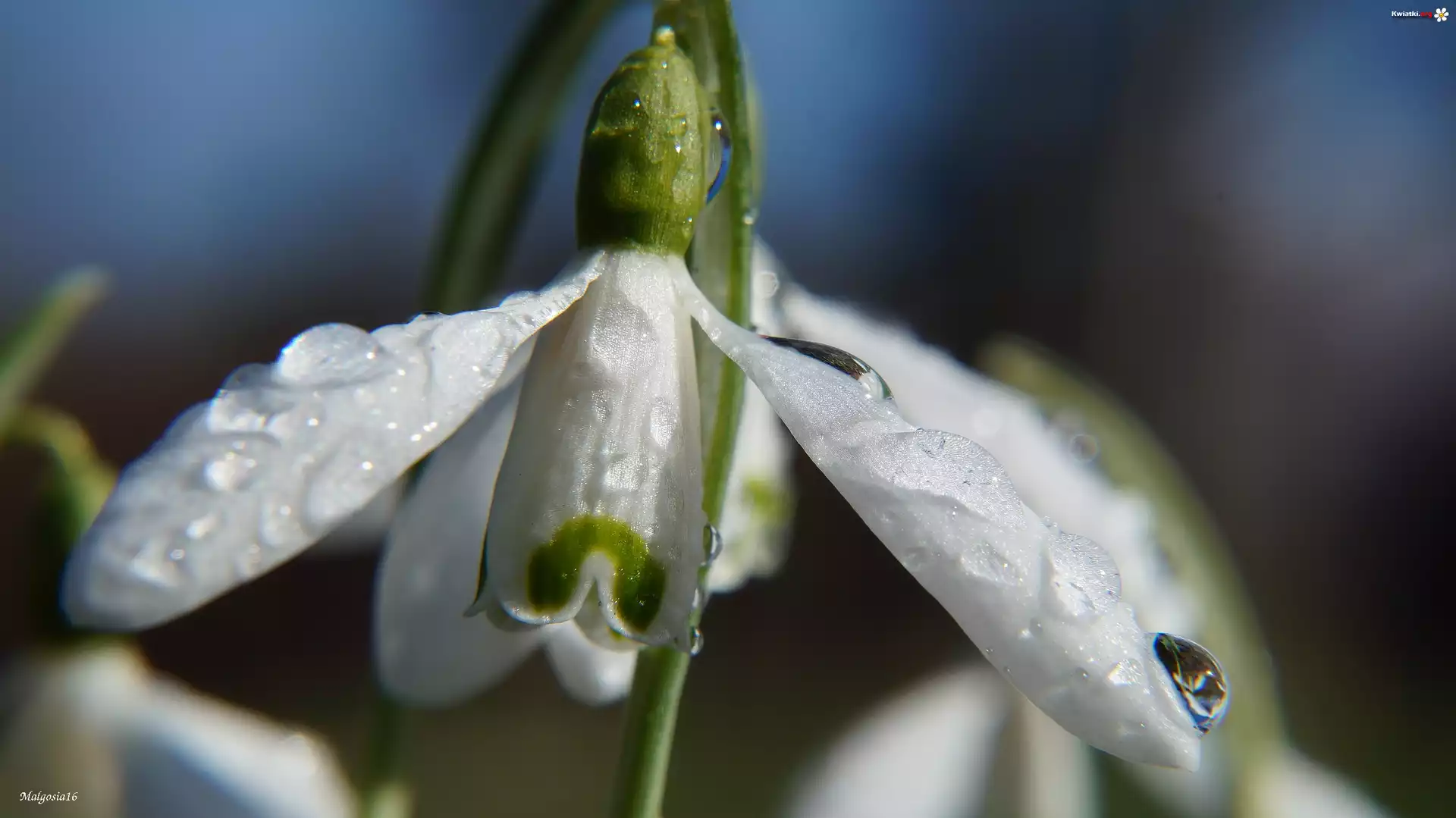 Biały, Kwitnący, Przebiśnieg, Krople, Wody - Zdjęcia