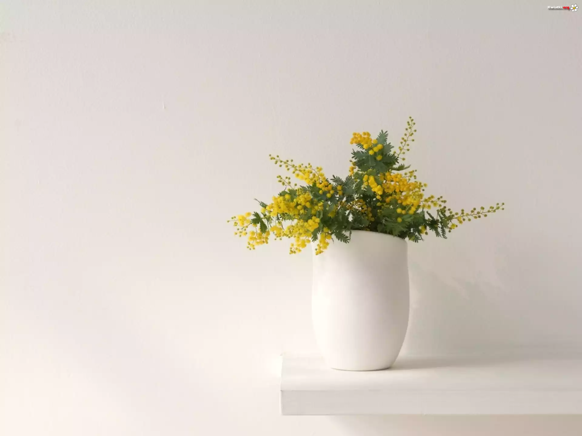 Żółte, Kwiaty, Biały, Wazon - Zdjęcia