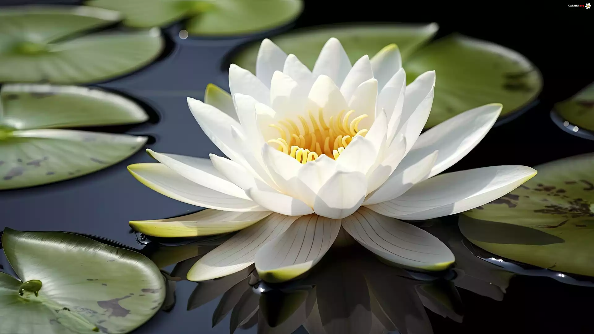 Kwiat, Biały, Lilia wodna, Liście - Zdjęcia