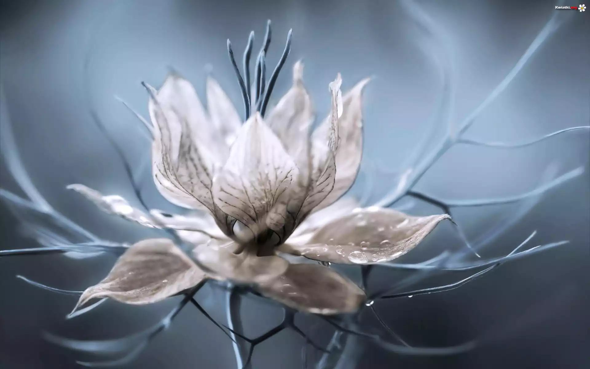 Kwiat Biały, Kwiatek, Płatki, Krople