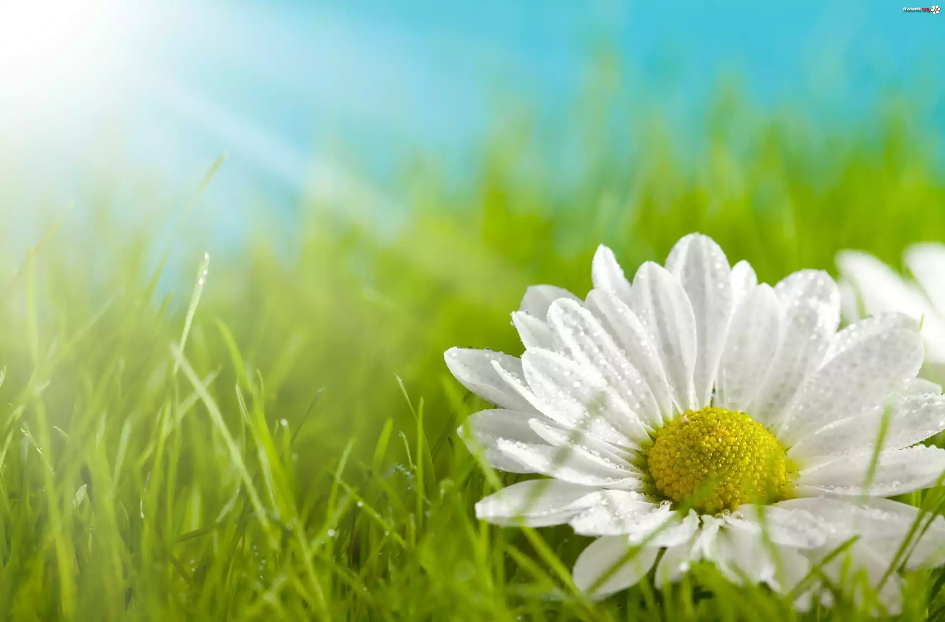 Biały, Kwiatek, Trawa, Promienie, Słońca - Zdjęcia