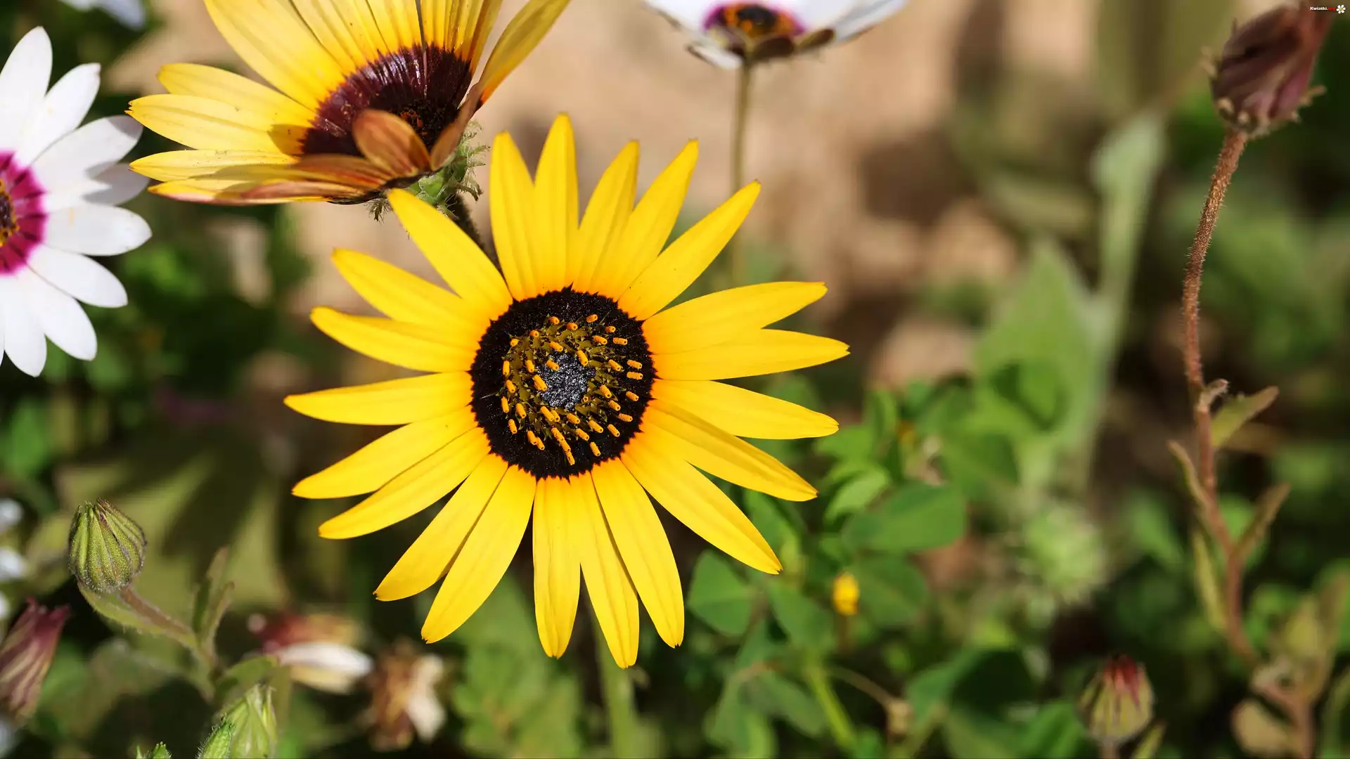 Kwiaty, Płatki, Żółty, Biały, Pączki, Rozmycie - Zdjęcia