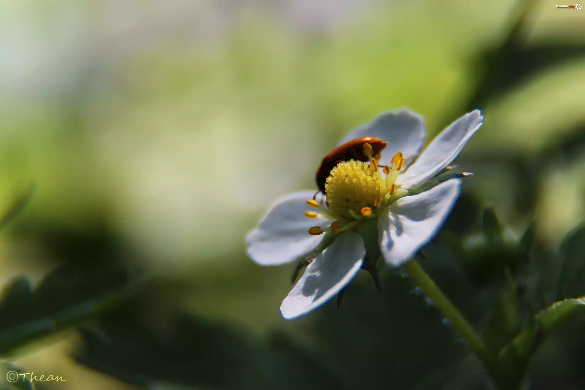 Biały, Kwiat, Truskawki, Owad - Zdjęcia