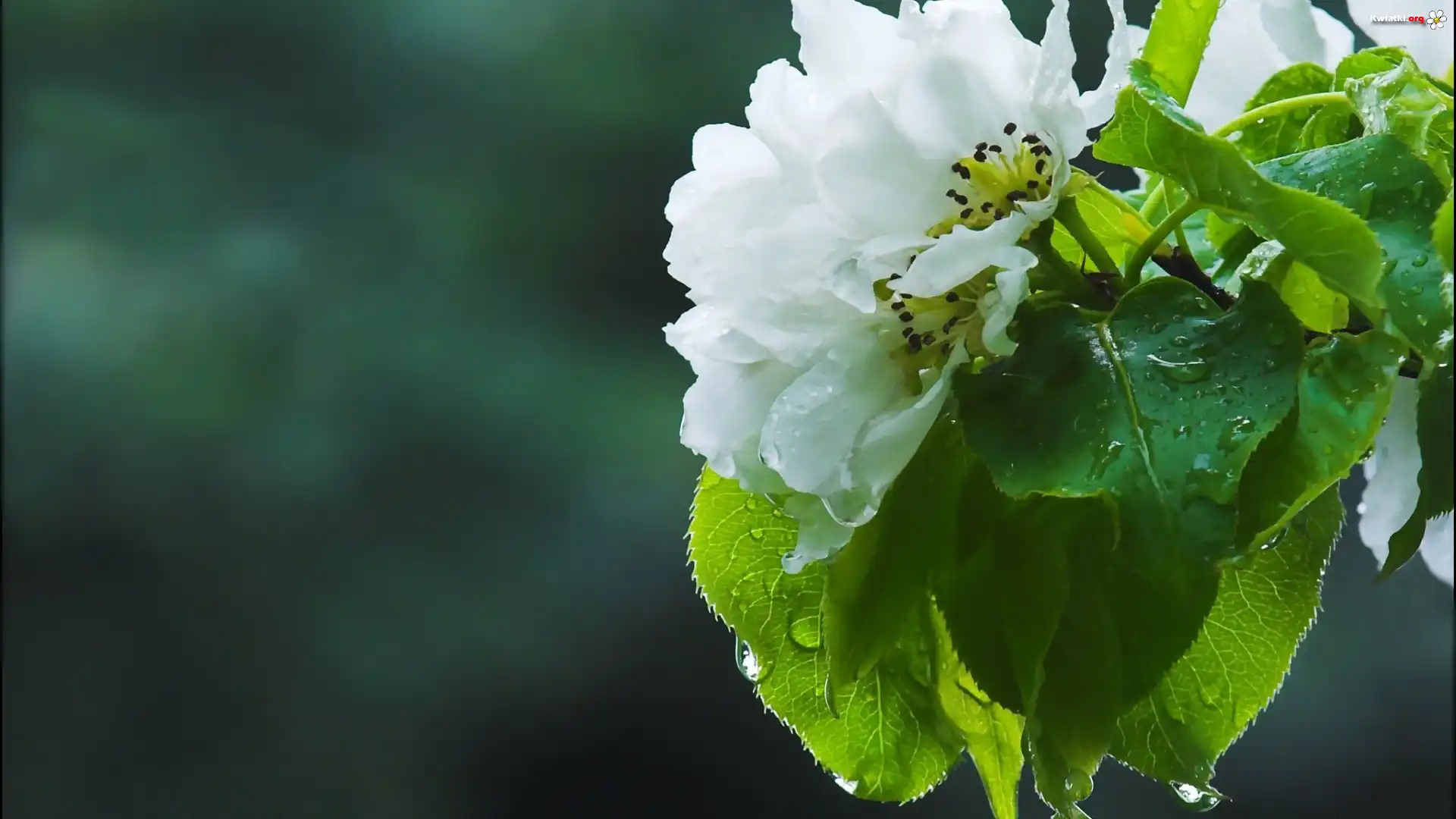 Kwiat Biały, Kwiat, Krople, Wody, Makro