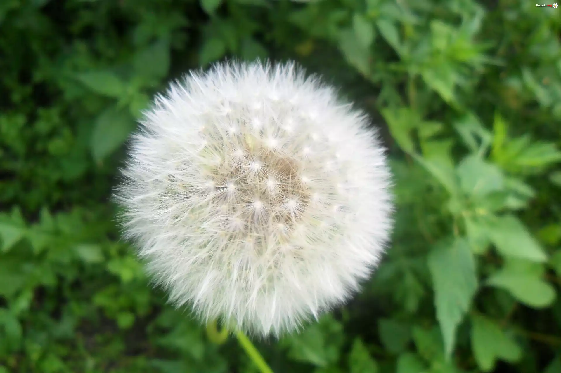 Biały, Kwiat, Mniszek, Pospolity, Zieleń, Liście - Zdjęcia