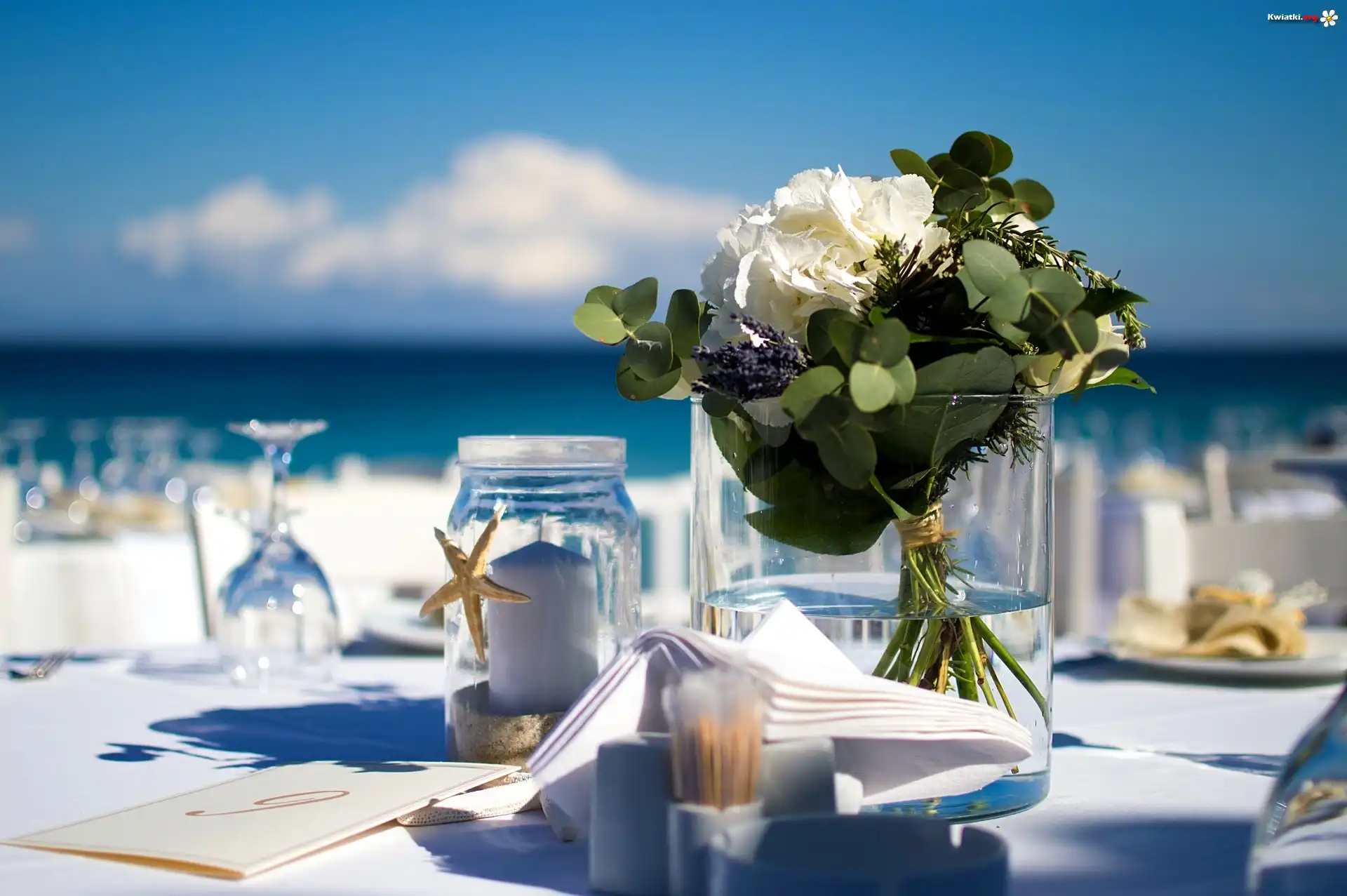 Bukiet, Białych Kwiatów, Dekoracja Stołu, Lato, Morze - Zdjęcia